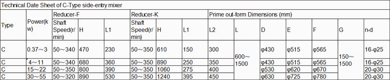 Il miscelatore con ingresso laterale di tipo C può essere installato nel serbatoio del petrolio, nel serbatoio di lubrificazione, nel fusto dell'olio combustibile, nel serbatoio della paraffina, nel serbatoio dell'asfalto (per asfalto in gomma pesante, bitume di petrolio di base, asfalto di grado A) e in alcuni serbatoi di stoccaggio per additivi e altri mezzi che è necessario mescolare.