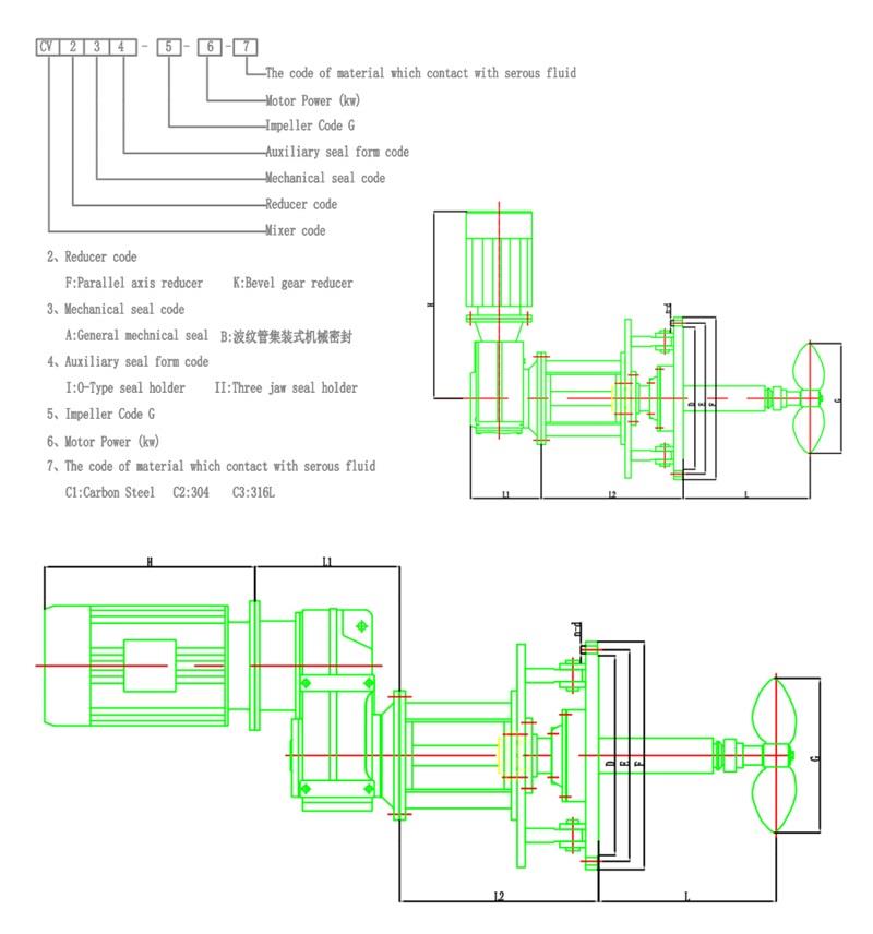 Il miscelatore ad ingresso laterale di tipo CV può essere installato nel serbatoio del petrolio, nel serbatoio di lubrificazione, nel fusto dell'olio combustibile, nel serbatoio della paraffina e in alcuni serbatoi di stoccaggio per additivi e altri mezzi che devono essere agitati.