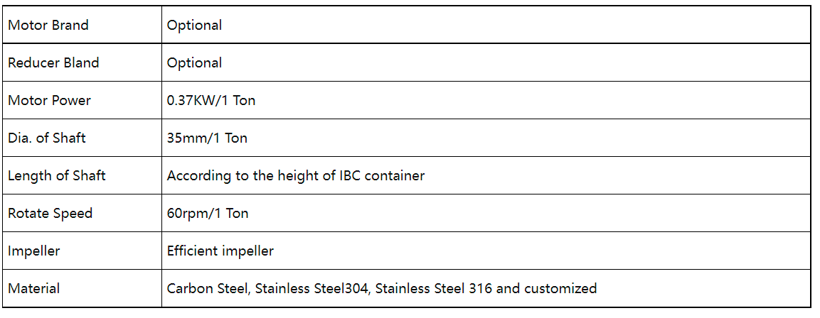 L'agitatore per contenitori IBC viene utilizzato per omogeneizzare, sospendere e sciogliere i fluidi nei contenitori IBC.KEHENG MIXING dispone di vari agitatori elettrici adatti a diverse applicazioni.