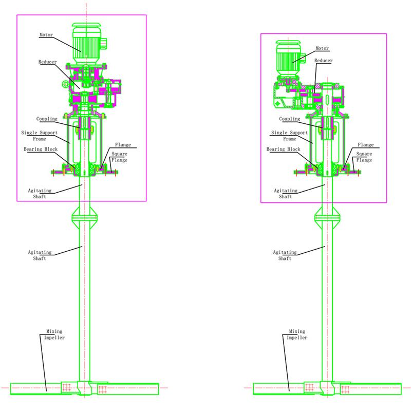 3) Caratteristiche del modulo di installazione dell'agitatore inclinabile: Installare l'agitatore direttamente sul bordo superiore del serbatoio, bloccarlo e fissarlo con la stecca o mandrino e il bordo del cilindro.L'asta di agitazione viene inserita obliquamente nel contenitore per la miscelazione.È adatto per mescolare il contenitore.Una struttura cilindrica o un dispositivo di miscelazione quadrato aperto prevengono le correnti parassite.Il dispositivo di miscelazione di questo tipo di installazione è più flessibile e flessibile, facile da usare e da mantenere, semplice nella struttura e leggero.Viene generalmente utilizzato su piccole apparecchiature e la potenza utilizzata è 0,1-2,2 kW.Viene utilizzato il mixer con uno o due strati di pale.Gamma 36 ~ 300 giri/min.
