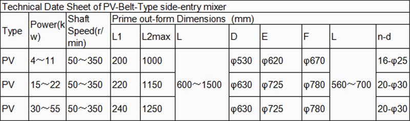 Il miscelatore ad ingresso laterale di tipo PV può essere installato nel serbatoio del petrolio, nel serbatoio di lubrificazione, nel fusto dell'olio combustibile, nel serbatoio della paraffina e in alcuni serbatoi di stoccaggio per additivi e altri mezzi che devono essere agitati.